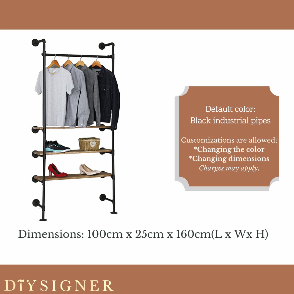 Amazon Com Fof Friend Of Family Industrial Pipe Garment Rack With Double Tier Shelves Wall Mounted Clothes Rod For Clothing Storage Gold White Color 40 Wide Home Kitchen from images-na.ssl-images-amazon.com Look how cool it looks as a curtain. How to build a super chic & functional closet organizer out of steel plumbing pipes, fittings, and wood. Be sure you have these basic tools: I ended up also spray painting the screws to match the black flange. I purchased the pipe an fittings and glued up the boards. Diy, organization, sponsored 47 comments. The pipe is black pipe. Looking for closet organizer ideas?
