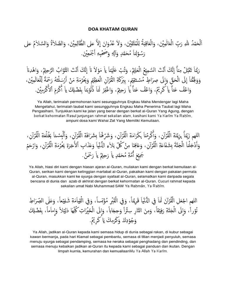 Hj. Zulheimy Ma'amor: DOA KHATAM AL QURAN VERSI 2 from orgawam.files.wordpress.com Namun beberapa ulama juga mengungkap bahwa doa khatam ini merupakan riwayat imam ahmad sebagaimana keterangan dari beberapa ulama hanbali dan ulama. Doa khatam quran versi pendek panjang lengkap. Memories of my life doa khatam qur an. Doa khatam quran berikut artinya dan lantuan mp3. Insyaallah doa khotmil quran ini bisa bermanfaat itulah bacaan allahummarhamna bil quran, doa yang dibaca ketika khotmil quran. Dan selawat dan salam ke atas rasul kita muhammad. Demikianlah teks bacaan doa khatam al quran lengkap dalam bahasa arab, latin dan artinya. Kitab kuning, doa, dzikir, qasidah.